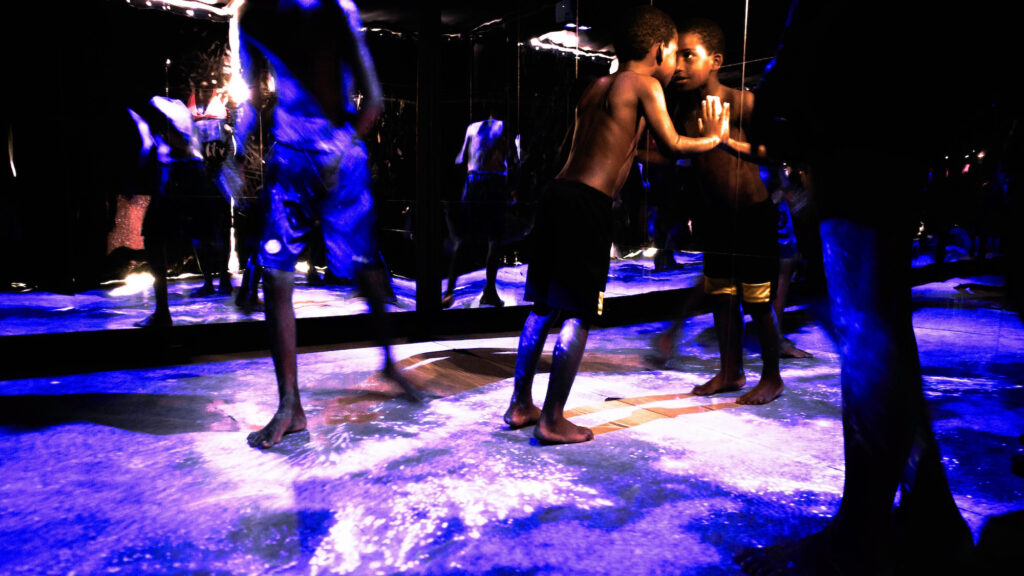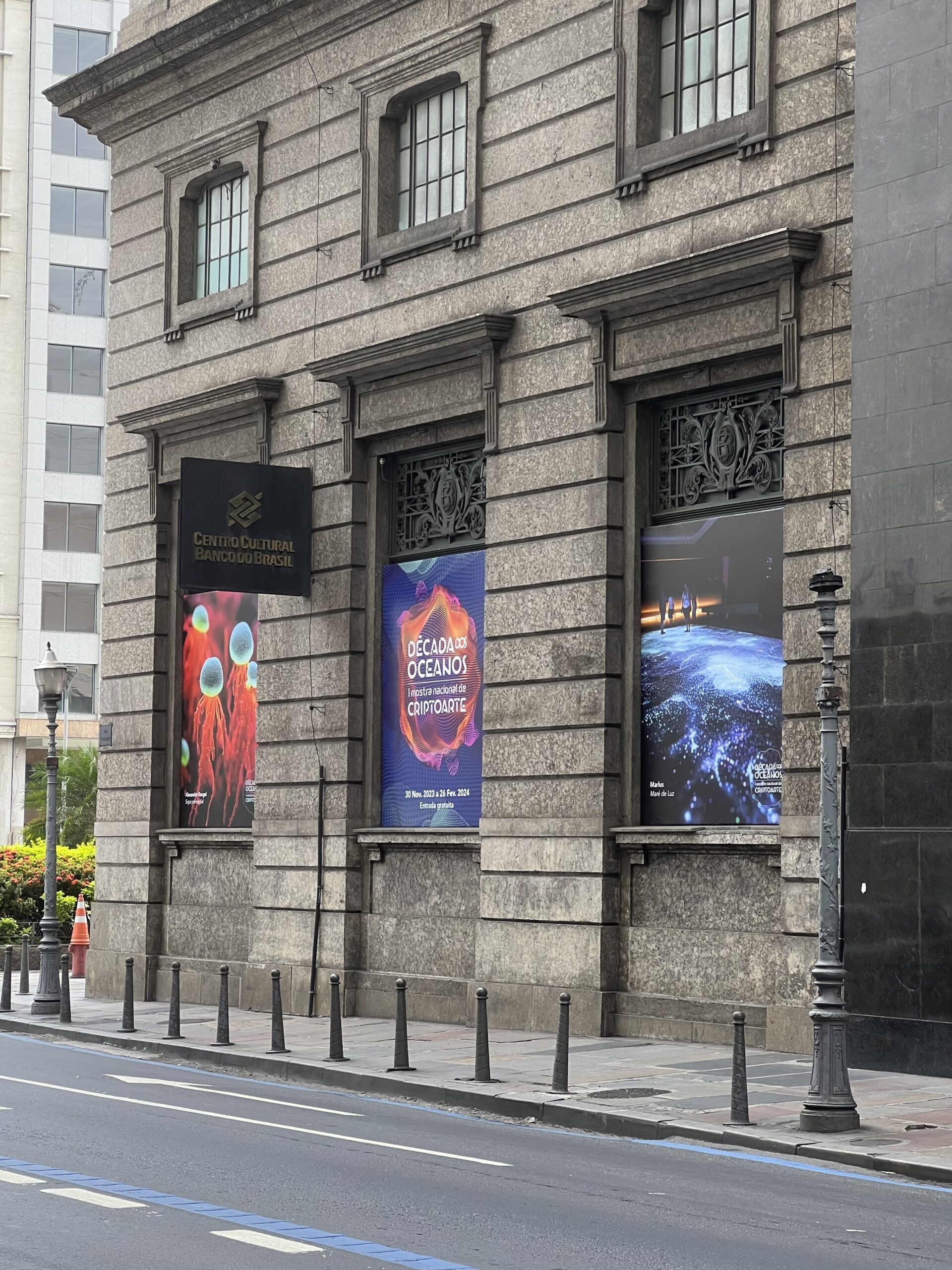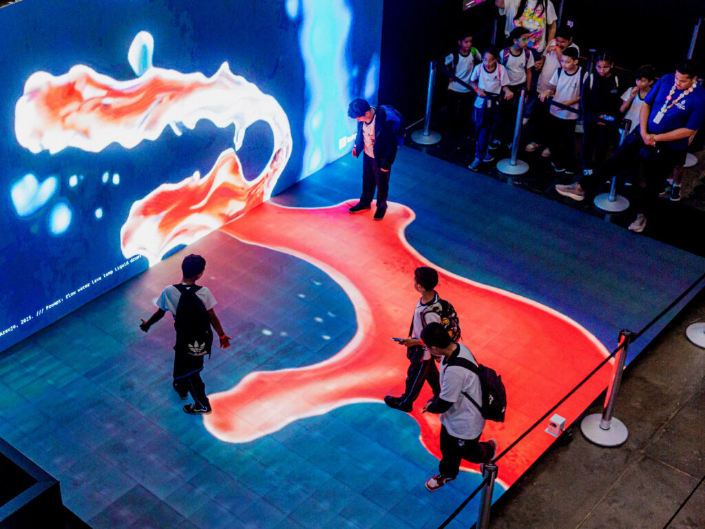 The work premiered at the Ocean Decade – I National Crypto Art Exhibition at Centro Cultural Banco do Brasil in Rio de Janeiro (November 2023 – February 2024), alongside 26 other artists exploring themes of ocean preservation and sustainability. Visitors of all ages moved through the space instinctively – dancing, running, testing the boundaries of interaction. The installation proved what we believe: that technology, when done right, invites play and wonder without requiring explanation. Since then, Maré de Luz has been presented at multiple venues, adapting to different contexts while maintaining its core interactive experience.